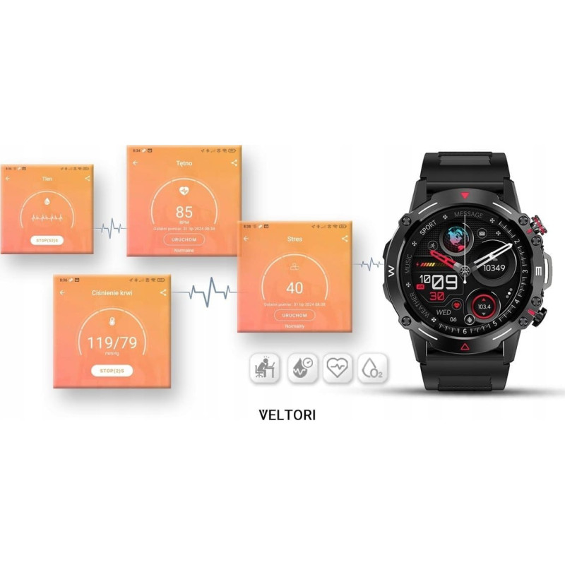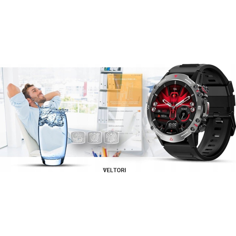 Gino Rossi Smartwatch Veltori VT110-1 Czarny Pasek Silikonowy