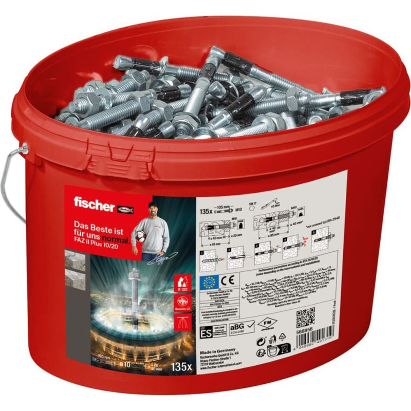 Fischer bolt anchor FAZ II Plus 10/20 in a bucket (silver, 135 pieces, galvanized)