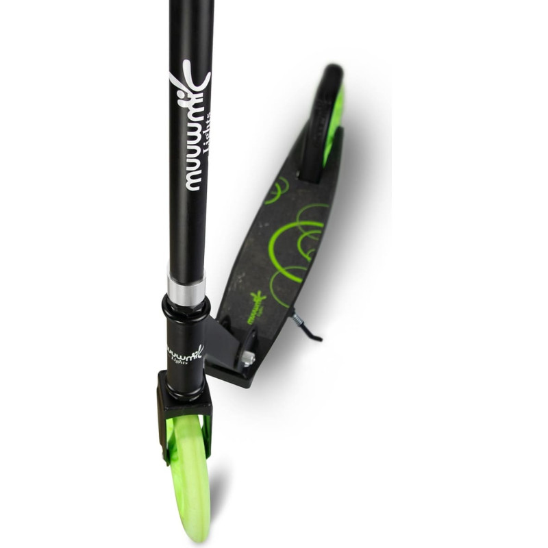 Muuwmi Lights Aluminium Scooter GLOW 215 mm (black/green, with luminous wheels and glow effect)